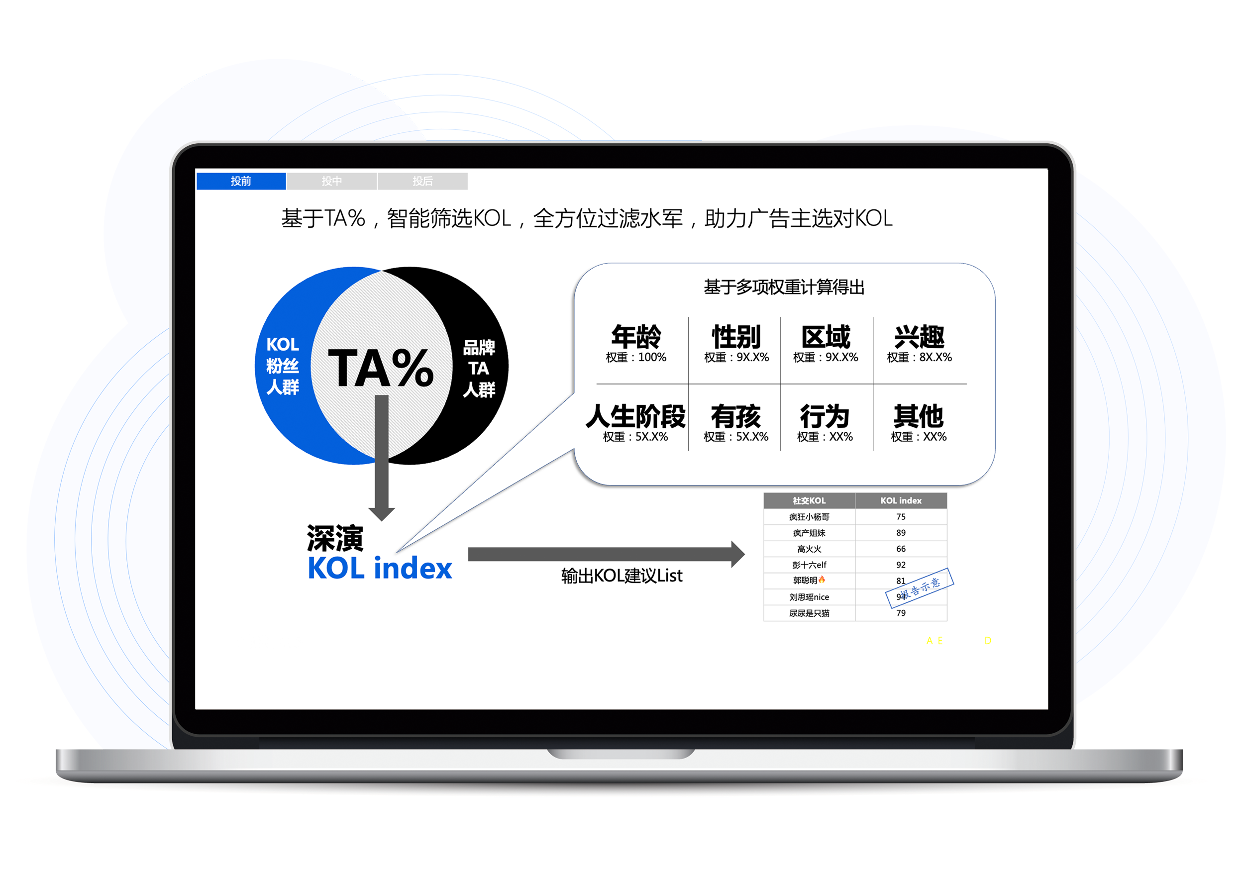 开心8K参谋科学前选可以跨领域找到最能影响品牌目标人群的KOL进行投放,同时有效平衡投资回报率